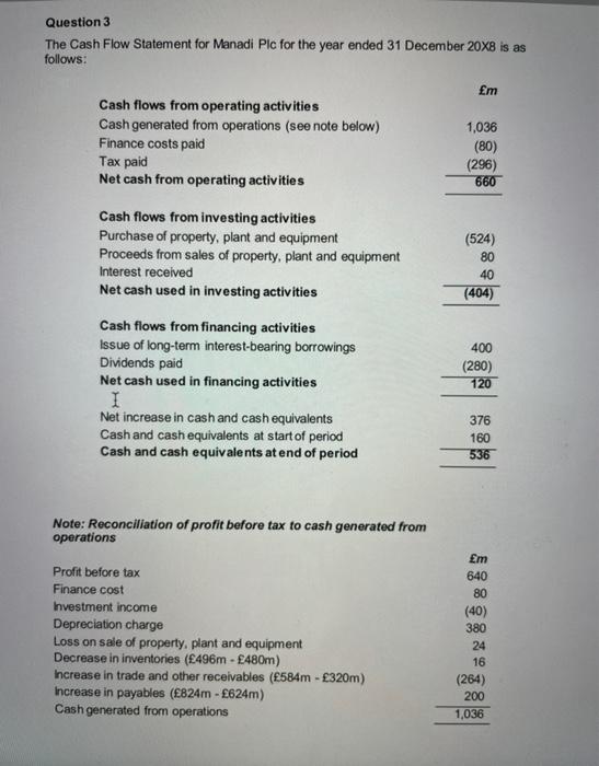 Solved The Cash Flow Statement For Manadi Pic For The Year Chegg Com